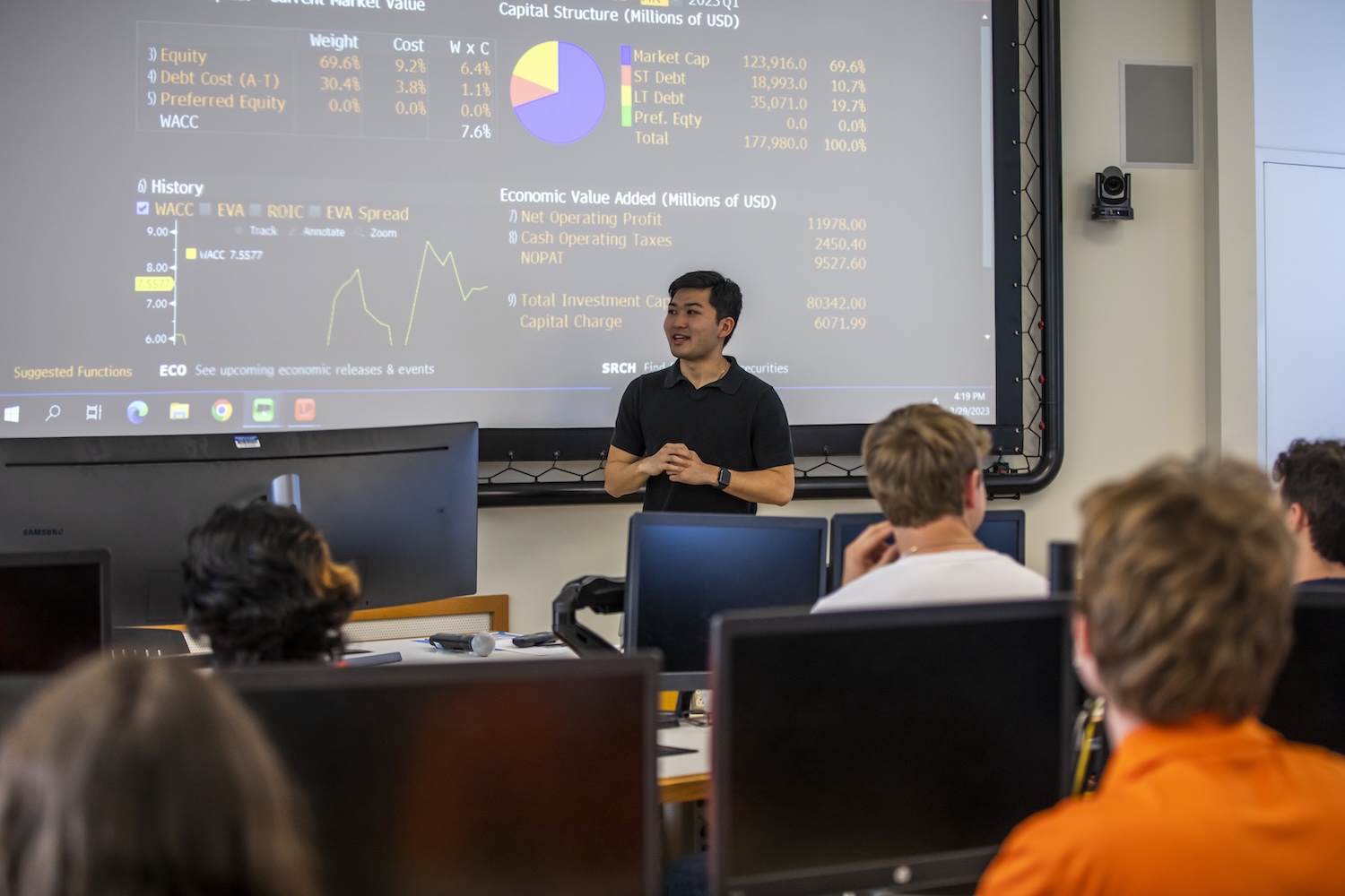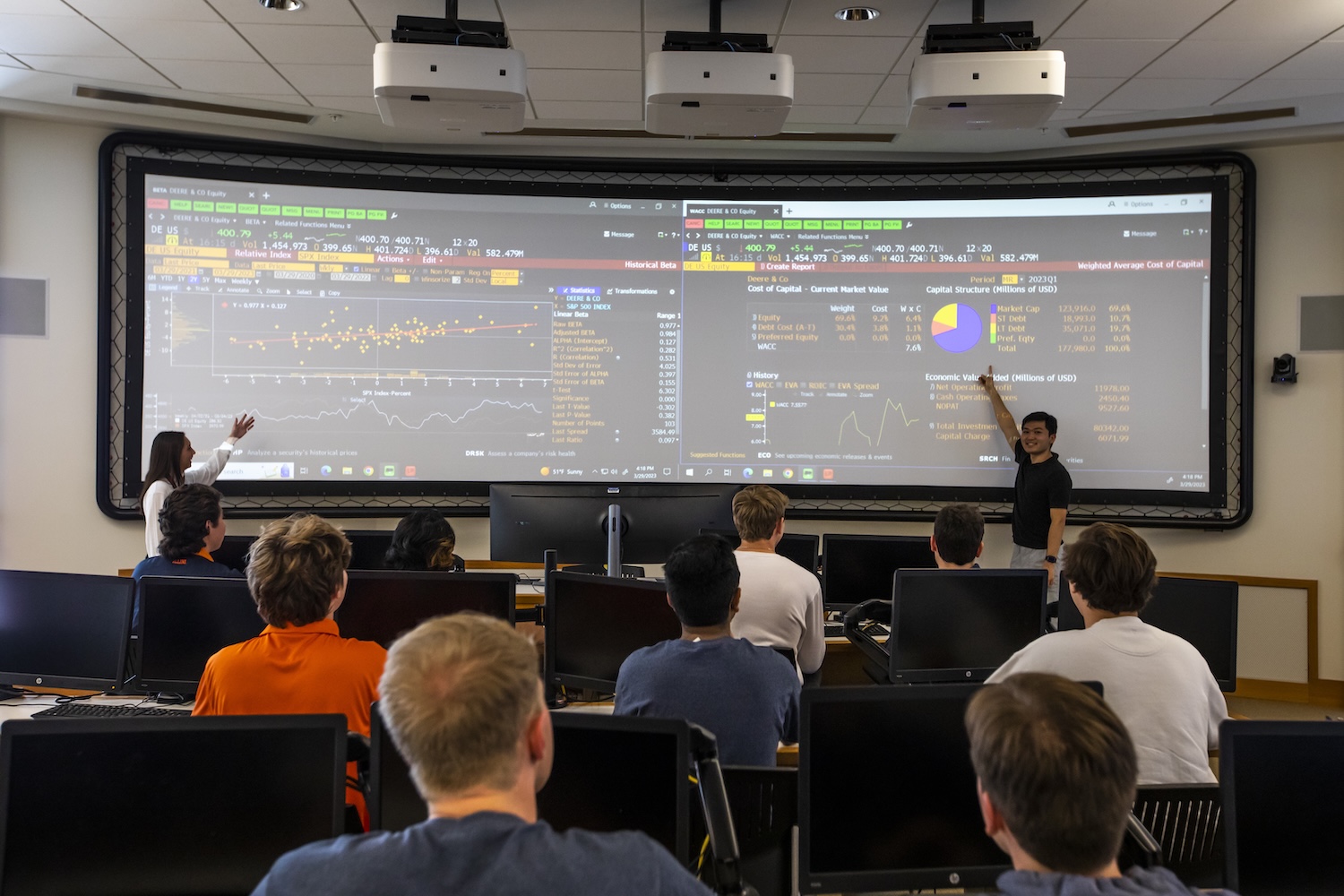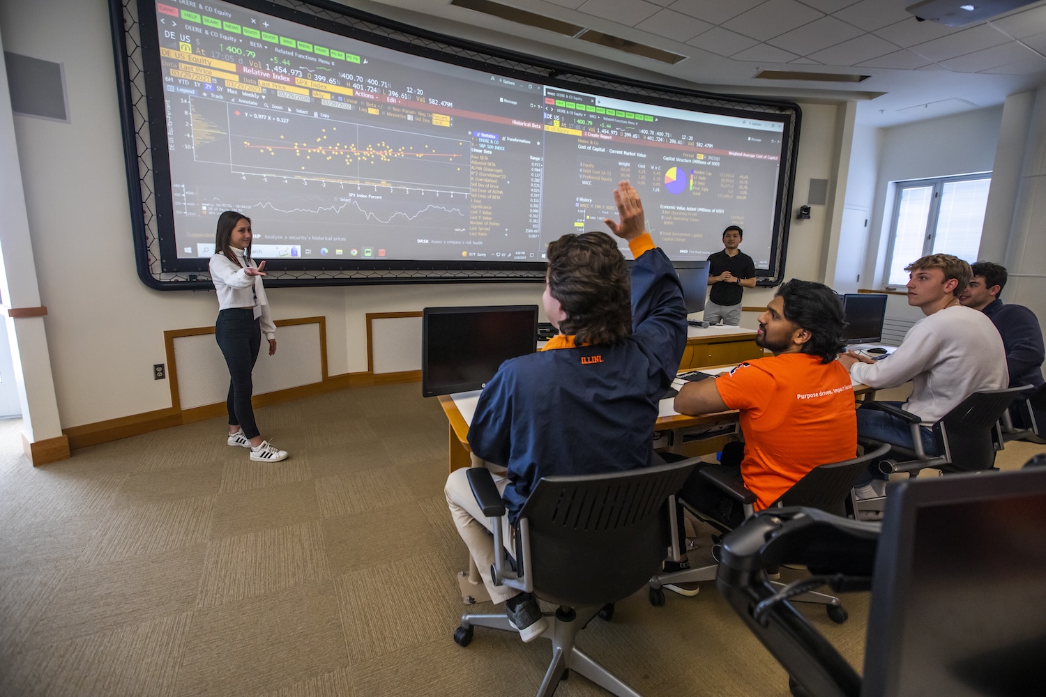 Master the same state-of-the-art finance and business tools that global firms use right here at Gies College of Business. Launched in 2009 by a landmark gift from the Chicago Mercantile Exchange Trust, the Margolis Market Information Lab is one of the most highly utilized university finance labs in the US. The lab provides a cutting-edge learning environment for you to immerse yourself in the latest financial and technology trends, equipping you with an upper hand in the vast world of finance.