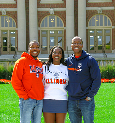 Nina, who plans to pursue a law degree in the future, came close to choosing a different university. As valedictorian of her class at DeKalb High School – the first Black female valedictorian in her school’s history – she strongly considered Harvard. But after earning the same scholarship that Robert earned years earlier and after receiving a photo of Michael and Chancellor Robert J. Jones, who leads the Urbana-Champaign campus, holding a sign that said “Nina, we want you,” Nina chose Illinois.