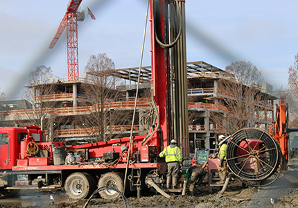 The use of geothermal heat pumps for heating and cooling is not a new technology. The first geoexchange system in the Midwest US was developed in the 1940s, which became more widespread for heating and cooling buildings since the 1970s. For Wymer Hall, 70 boreholes will be drilled in the field behind Wymer Hall (the Military Axis). The HDPE piping will be placed into the boreholes and run in trenches near the surface into the building. Typically, two wells are drilled per day that reach a depth of 450 feet.
