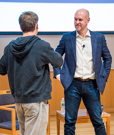Coon had some advice for the students in the audience. “I wish I had been more thoughtful and patient about what I wanted to do,” he said. “That’s really important. You don’t need to rush – you can stop and think about what do you want to accomplish, what’s your vision? You have a lot of time [in college] and that’s a luxury that I don’t think a lot of people take advantage of. You have an opportunity to experiment.”
