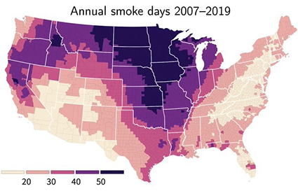 For example, most of Illinois gets more than 40 days of smoke annually.