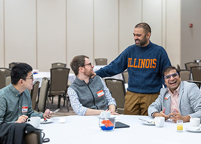 The conference attracted practitioners from Gies Business corporate partners Michael Ritter of Horizon Hobby and Jim Warfield of Caterpillar, as well as Morgan Zemaitis of ConAgra Brands and Helen Heiser of Abbott Laboratories, spanning industries from manufacturing and agriculture to consumer goods and healthcare, to share how their organizations are thinking about and navigating a shifting sustainability landscape. Assistant Professor of Business Administration Rakesh Allu, who moderated the industry panel, said he was pleased by the candid and informative tone the industry experts brought to the conference.