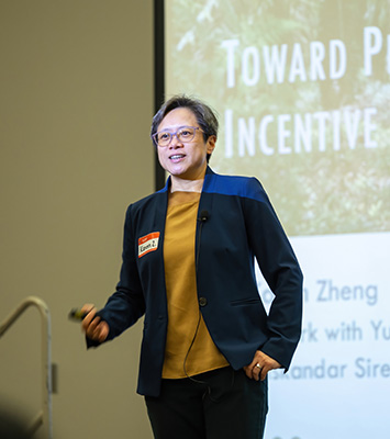 The conference also featured research presentations across three sessions from a wide range of experts. In the opening session on corporate strategy, Sanjith Gopalakrishnan (McGill) proposed a hybrid carbon-footprinting method to better track scope 3 emissions through supply chains. Yifei Lu, assistant professor of accountancy at Gies Business, explored unexpected consequences of ESG transparency, finding that rating agency coverage can make managers less responsive to market signals. Finn Petersen (Indiana University) examined how vertical integration can reduce a firm's exposure to ESG violations. The second session on policy and social impact featured Luyi Gui (UC Irvine), who explored how AI's growing energy demands affect the renewable transition depending on market maturity, Dwaipayan Roy (University of Virginia), who investigated whether female legislators in India improve contraceptive uptake in government health facilities, and Bohan Li, PhD student in business administration at Gies Business, who proposed a recommender system designed to maximize the number of fully funded projects on donation-based crowdfunding platforms.